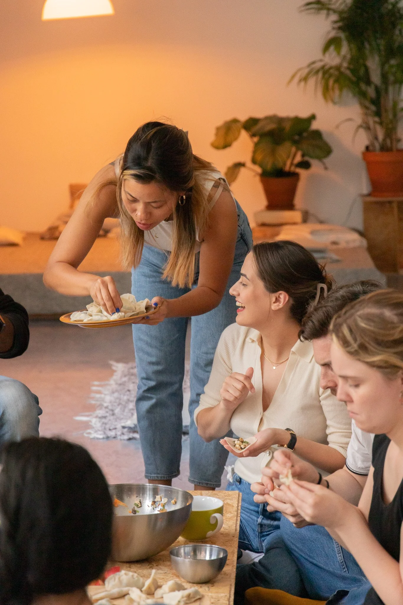 Folding and wrapping dumplings while gabbing about the best combination of dipping sauces (i.e. soy, scallions, sesame oil) and rolling sushi maki together while collaborating on choice of fillings (i.e. avocado, tofu, cucumber, shrimp) created an enjoyable environment where participants felt at ease as if they were coming together in a friend’s cozy living room setting.