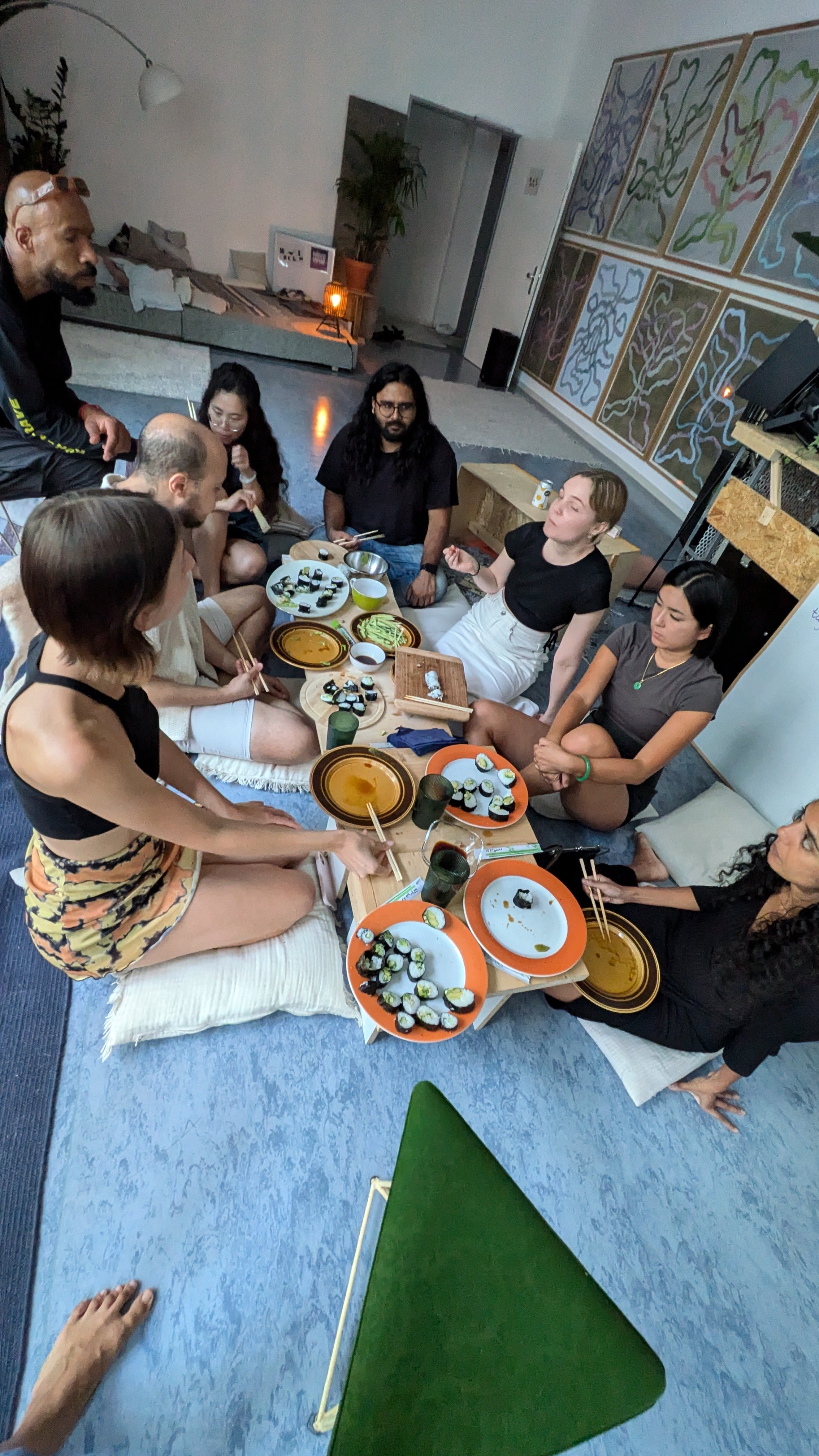 For our second dinner ritual in 2024, I hosted 7 people once again at the House of Color community space in August in Berlin for an evening of guided meditation, a sharing circle, followed by guided instruction on how to roll Japanese sushi rolls, filled with sushi rice, seaweed, avocado, cucumber, tofu and shrimp.
